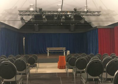 Das neue Theater in der Südsee ist die Spielstätte der „jungen bühne auersmacher“ und befindet sich im Gebäude des Ruppertshofsaal in Auersmacher. Im Foyer lädt eine kleine Bar Besucher*innen zum Verweilen an Stehtischen ein. Im Nebenraum befindet sich der Theatersaal. Über hundert Sitzplätze (aktuell 115) in aufsteigenden Rängen garantieren perfekte Sicht auf die erhöhte Bühne. Das Theater ist komplett barrierefrei.