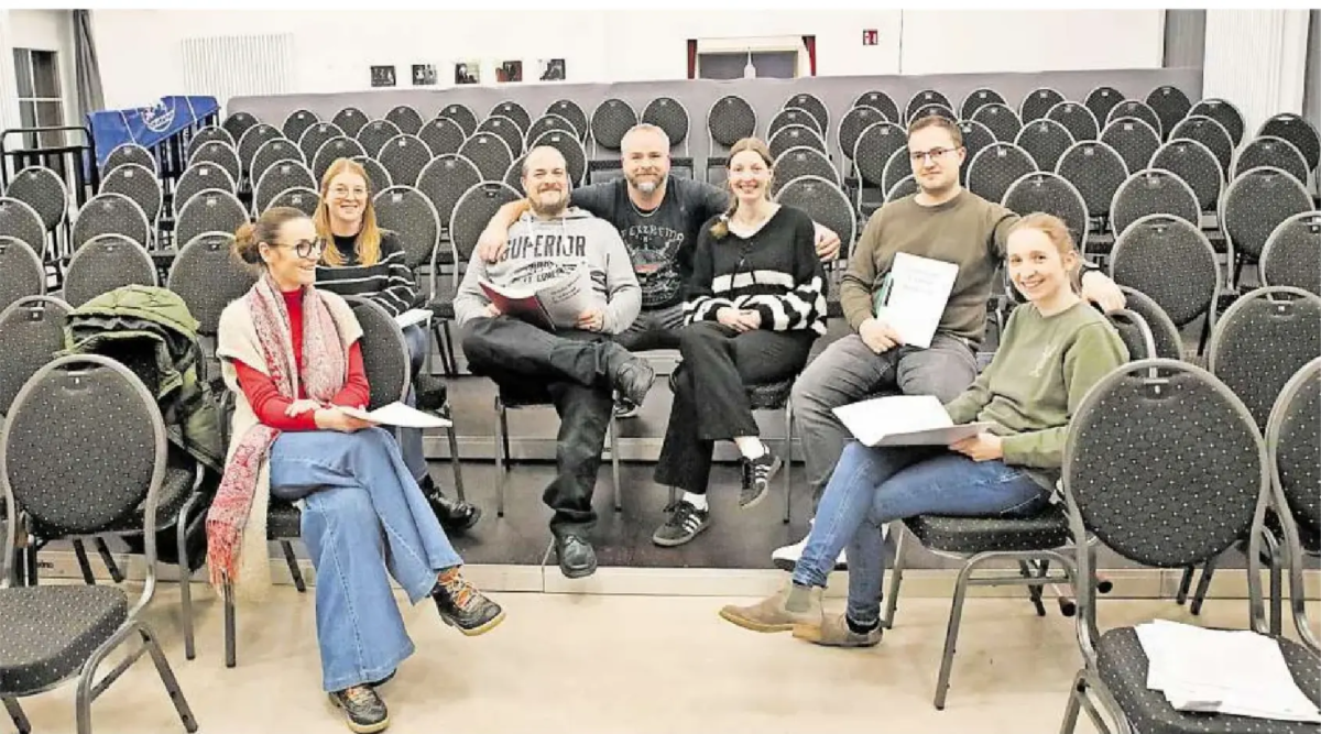Der Vorstand des Theatervereins „Junge Bühne Auersmacher“ fühlt sich in seinem neuen Theater im Ruppertshof pudelwohl. Unser Bild zeigt (von links): Sandra Kraemer, Lisa Thörner-Woll, Thomas Bläsius, Stephan Lang, Hélène Meßner, Jannis Brach und Alisa Kallenborn. FOTOS: HEIKO LEHMANN