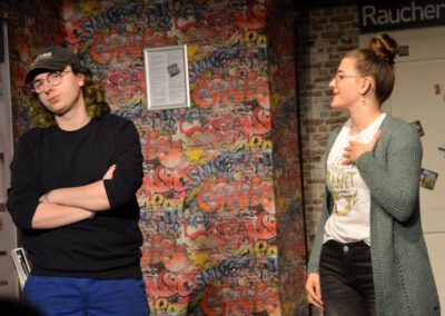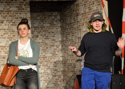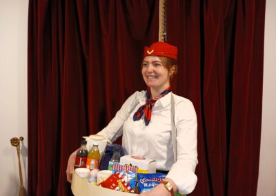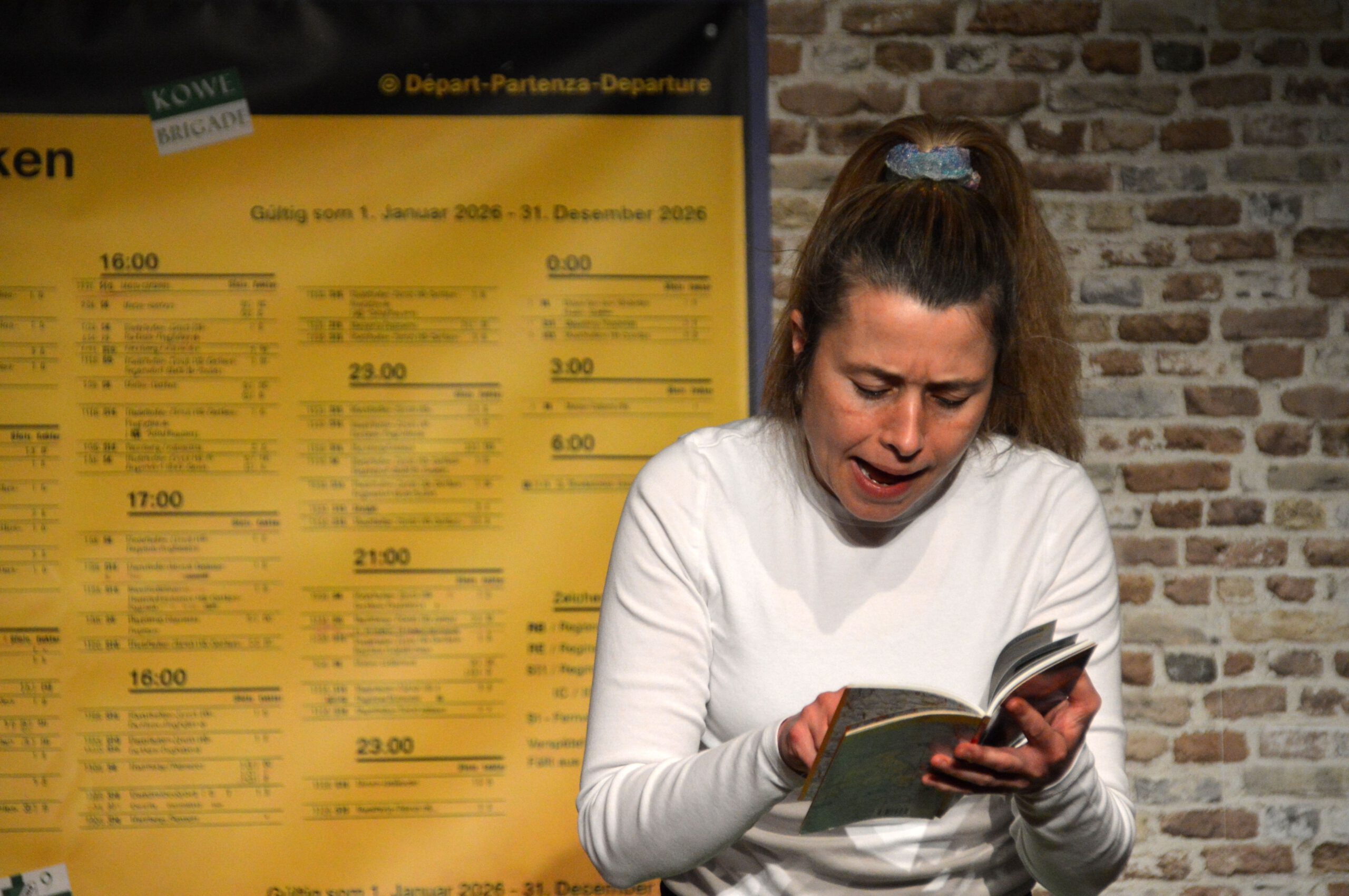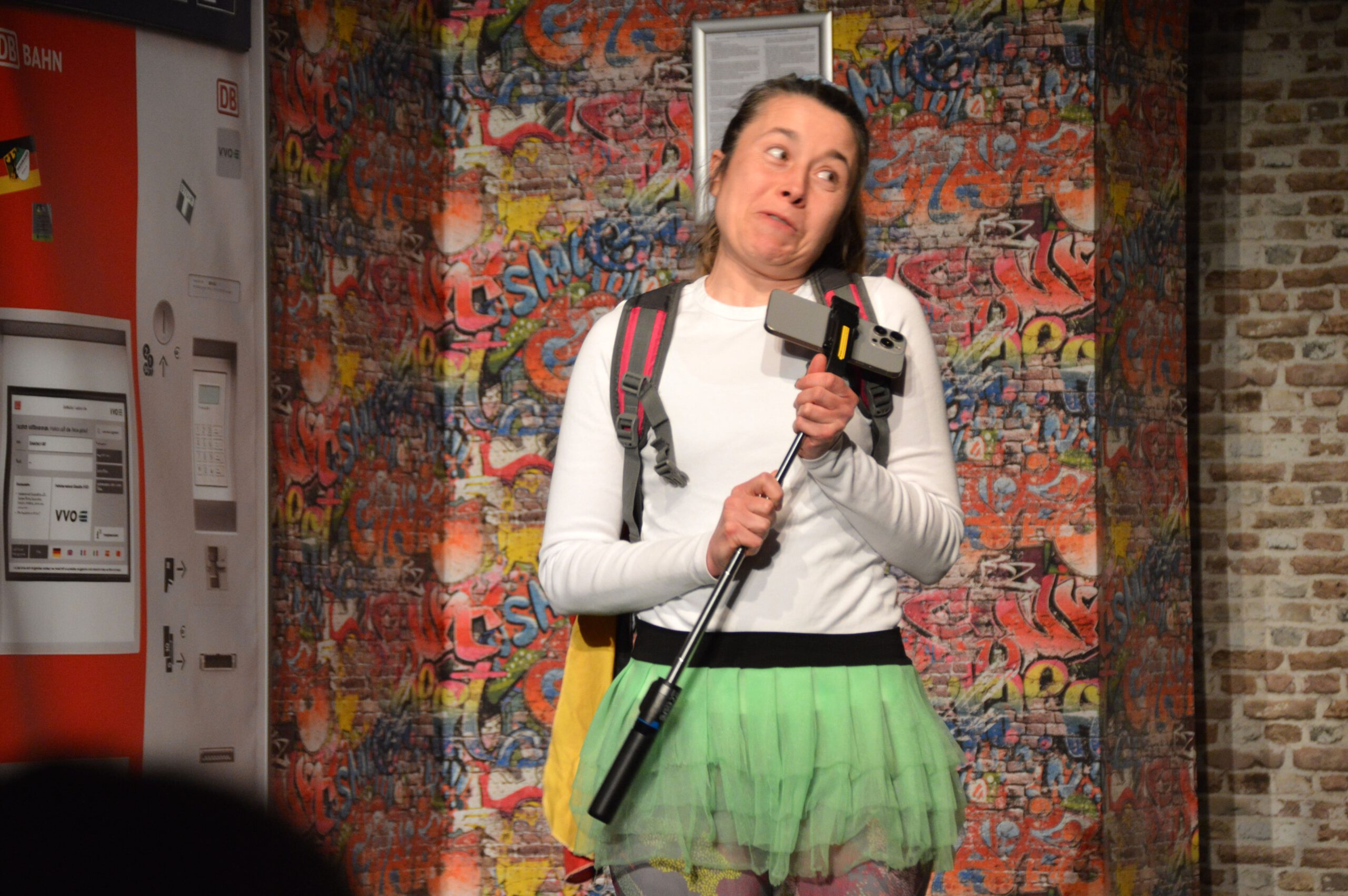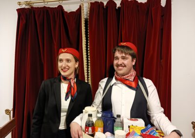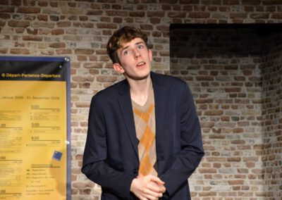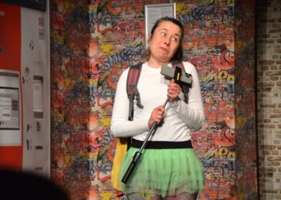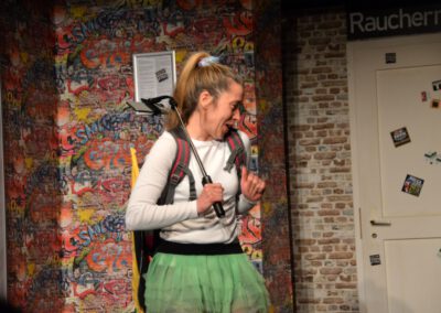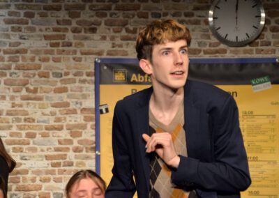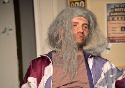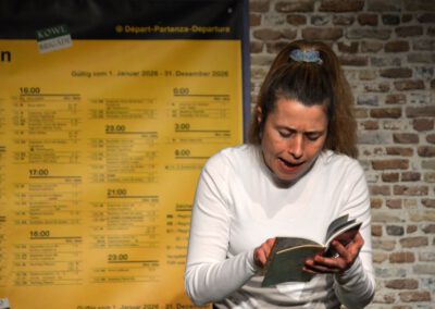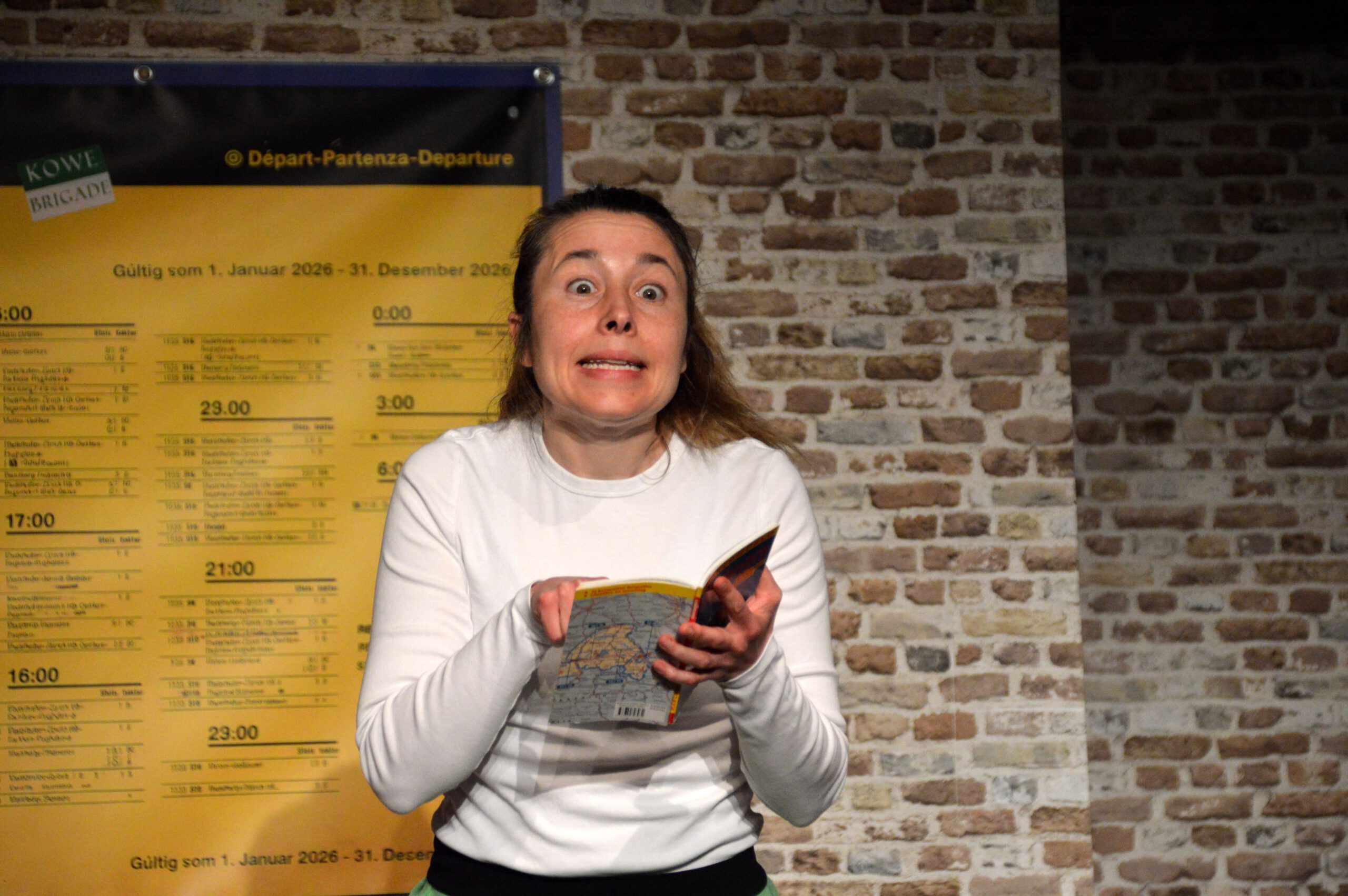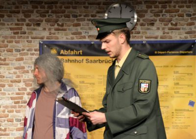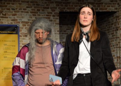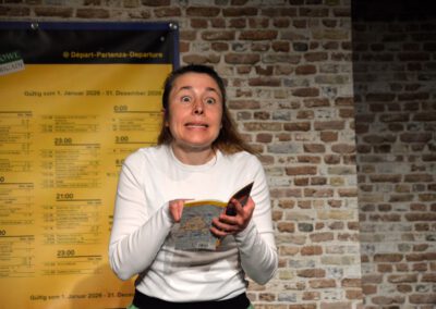 Die Zuschauer werden charmant und wortwitzig als Mitreisende ins Geschehen eingebunden – eine köstlich schräg-ironische Reise, die ans Herz und die Lachmuskeln appelliert.