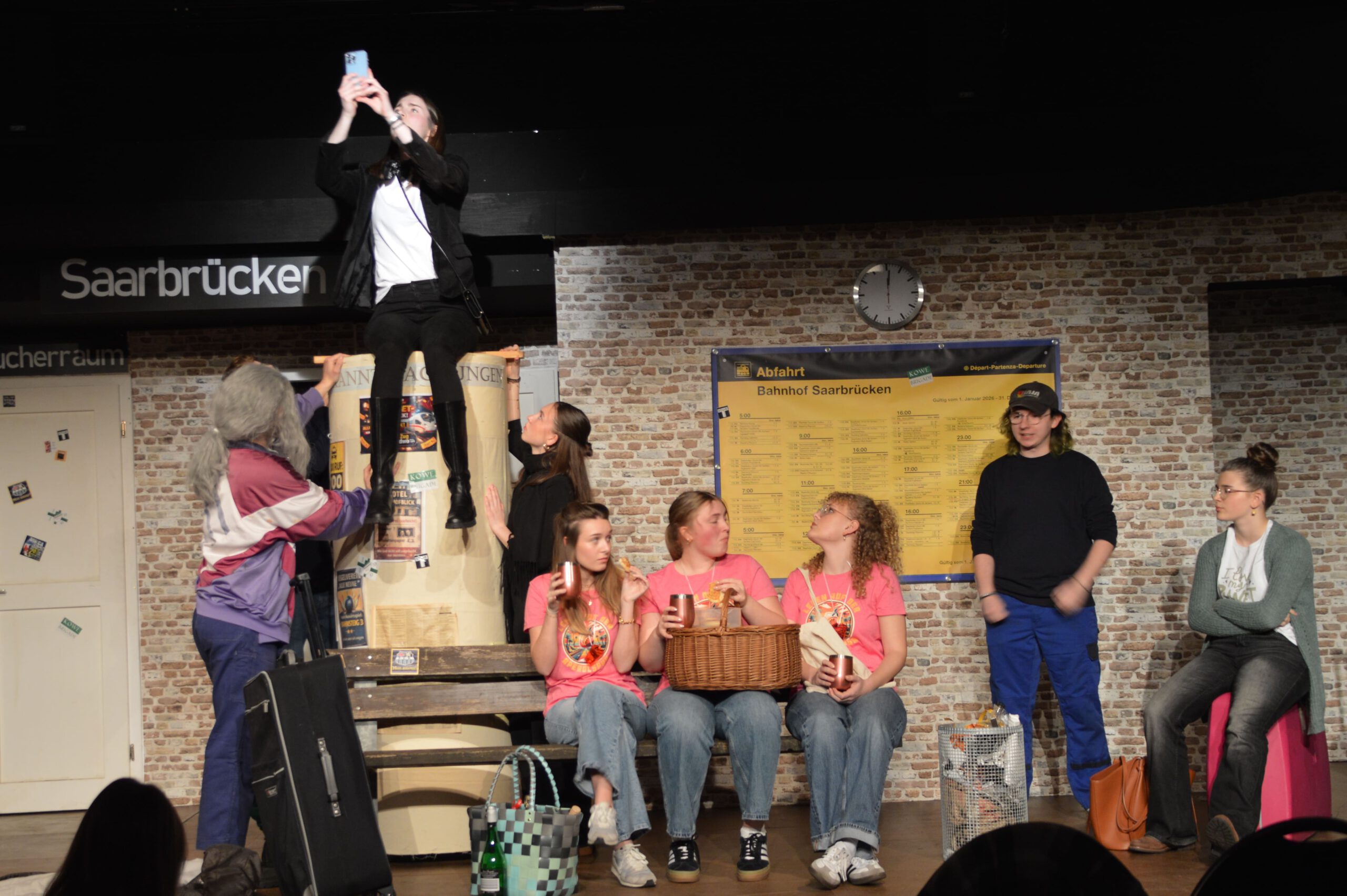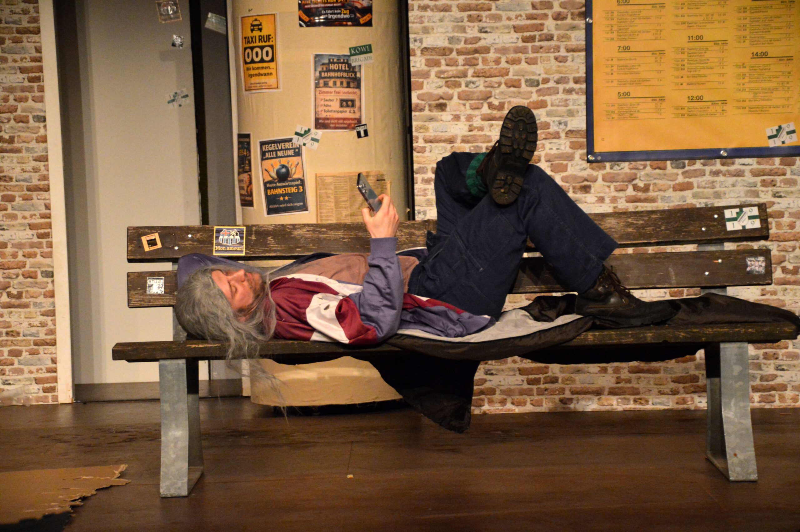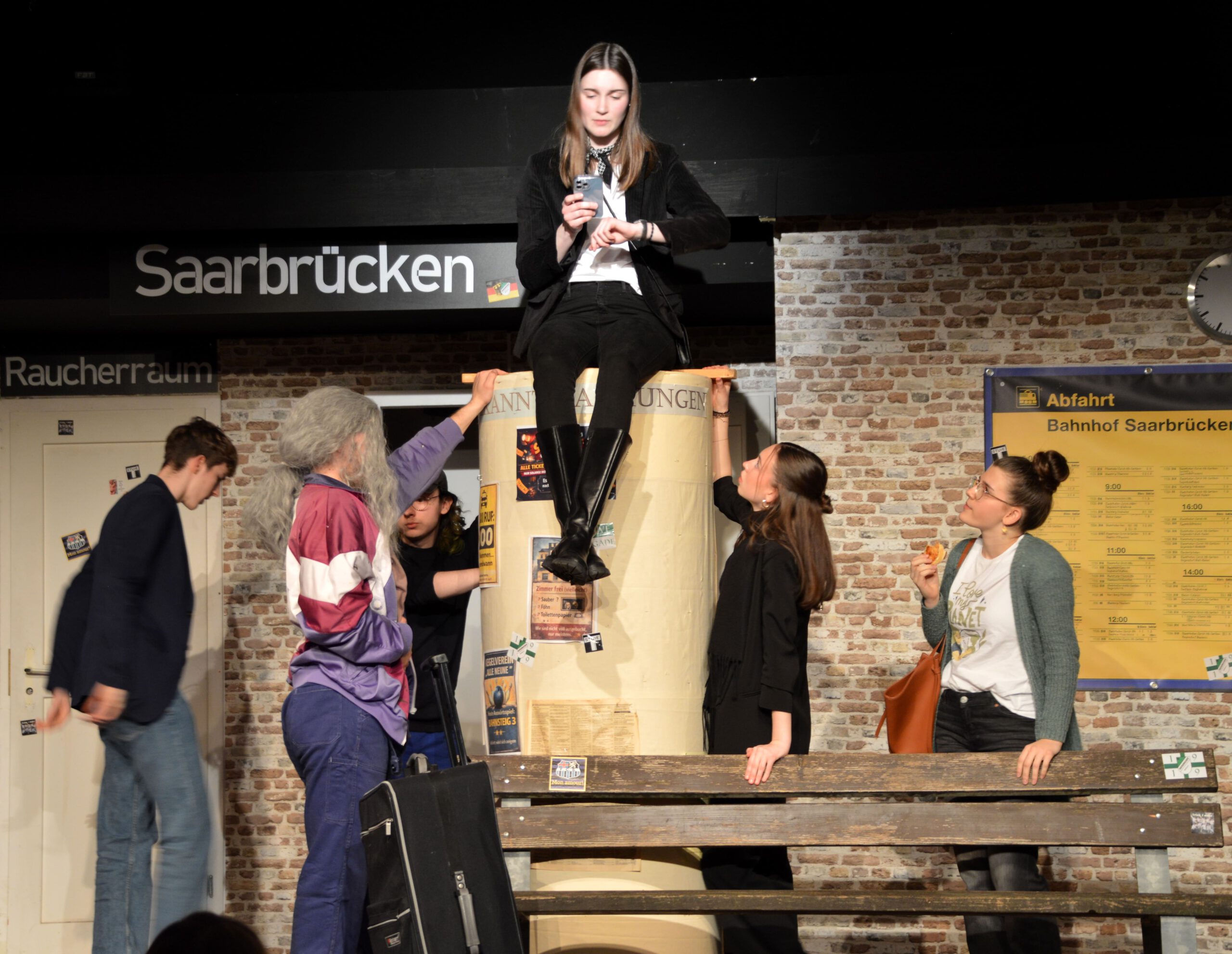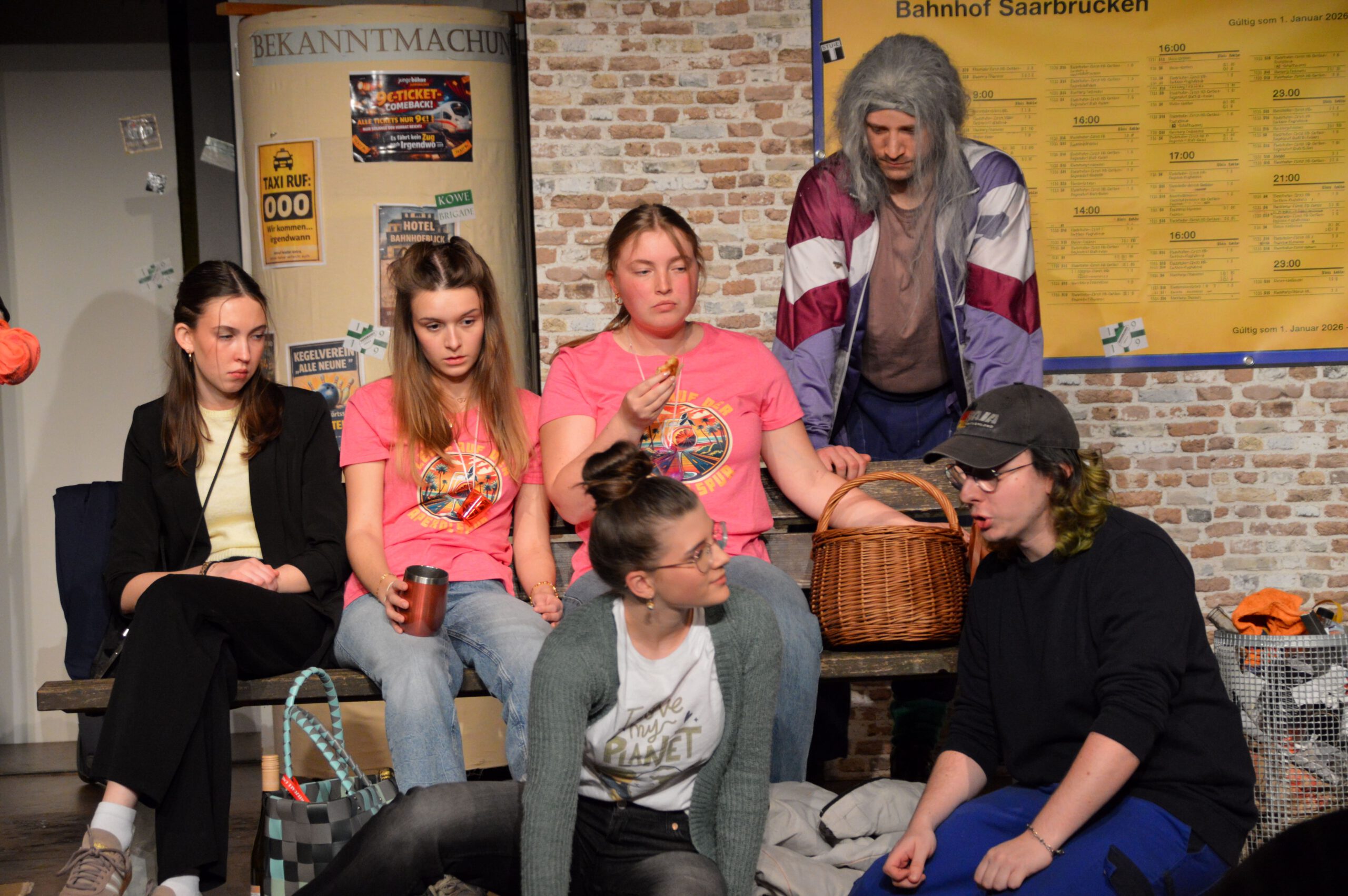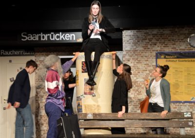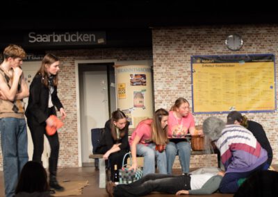 Der ICE 6948 muss plötzlich auf einem trostlosen Provinzbahnhof halten – und die Fahrgäste sind auf sich allein gestellt. Kein Handyempfang, keine Taxis, kein Kiosk – stattdessen steckt ein wild zusammengewürfeltes Publikum fest: ein illustres Kegel-Club-Team, eine gestresste Businessfrau, ein eigenwilliger Verschwörungstheoretiker, eine überdrehte Motivationstrainerin, ein zerstrittenes Ehepaar – und ganz nebenbei wird mitgeteilt, dass sich unter ihnen womöglich ein Psychopath versteckt. Ein turbulentes Nervenchaos beginnt – und während sich Irritationen und Skurrilität steigern, finden die Reisenden ein gemeinsames Lachen.